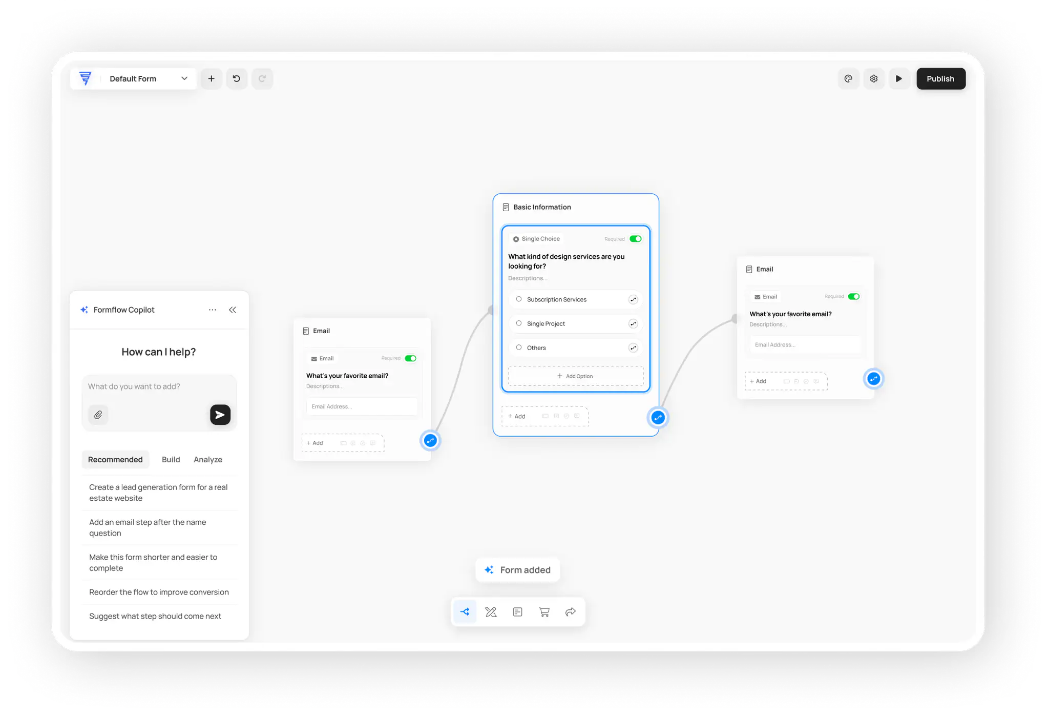 Ask Formflow Copilot to create a form for you. Begin the form-building process with one simple inquiry about what you need.