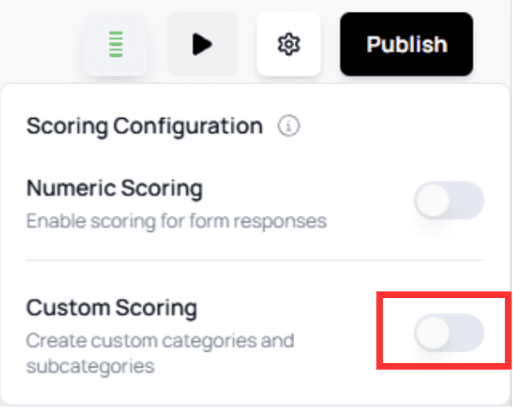 To open the Custom Scoring panel, click the scoring button in the top-right corner of the Canvas — the same button used for Numeric Scoring.