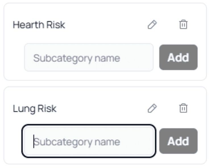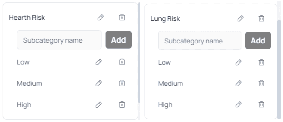 (e.g., Heart Risk, Lung Risk, Skin Risk)One Main Category + Only Subcategories