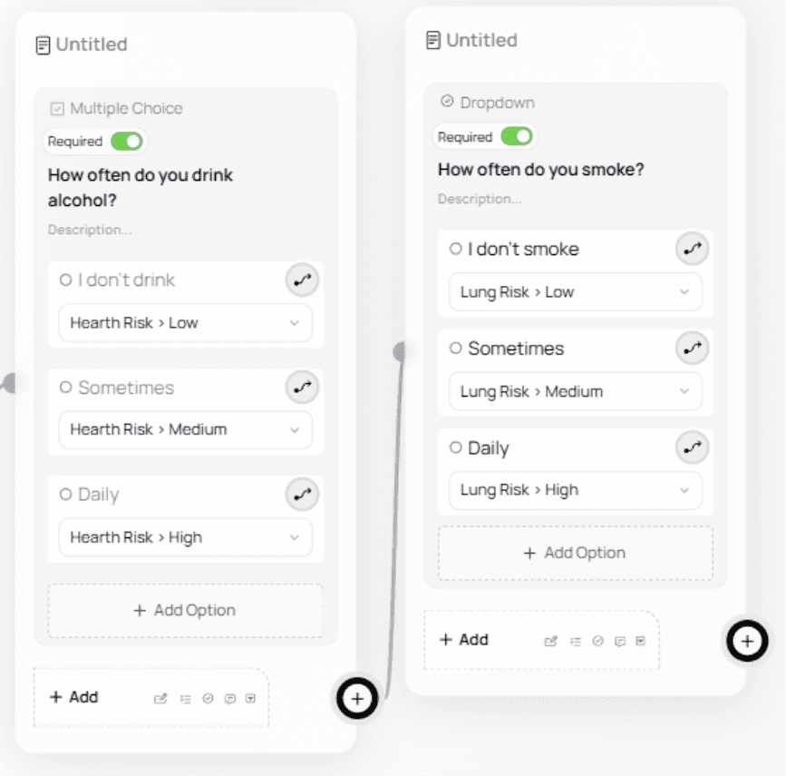 Categories help you classify answers (e.g., “Heart Risk”).