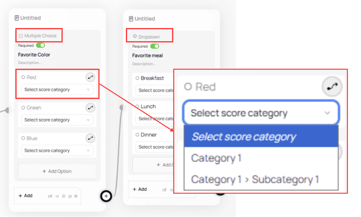 When enabled, each option receives a Category Selector used to assign a category or subcategory to that option.