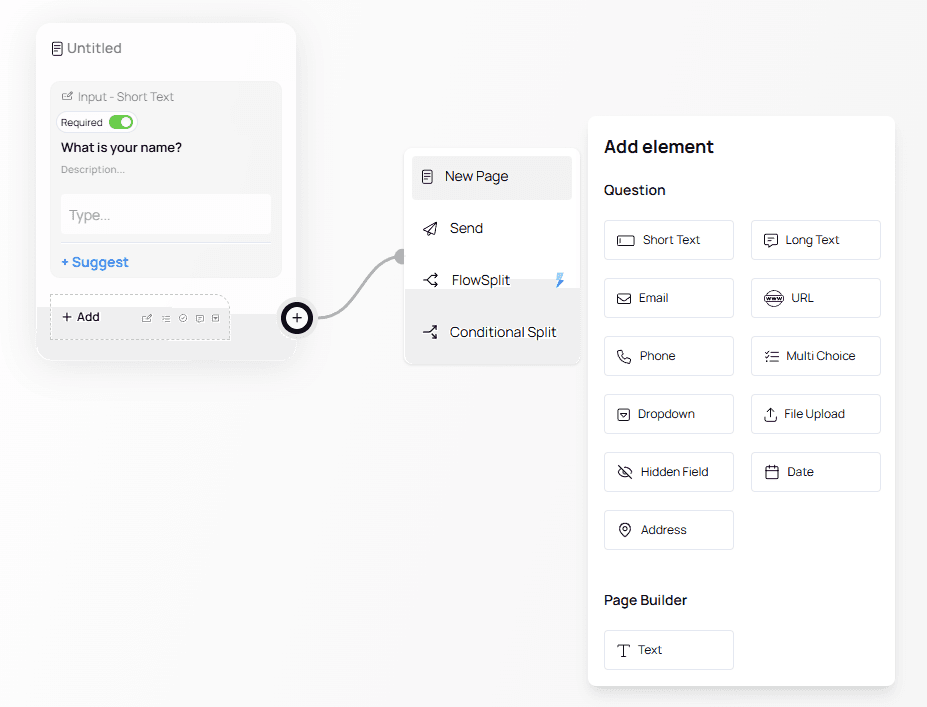 Select Short Text. A new question node will appear on the canvas.