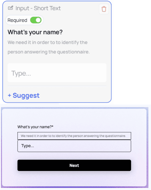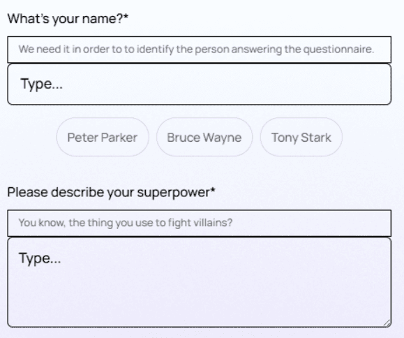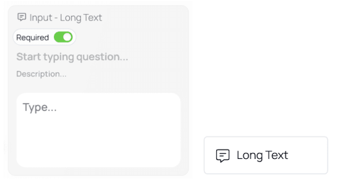Suggestions work best for common, repetitive answers (e.g., department names or predefined labels).Long Text