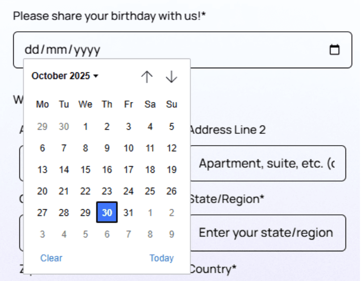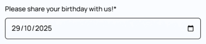 Used to collect a calendar date (e.g., bookings, birthdays, reservations).