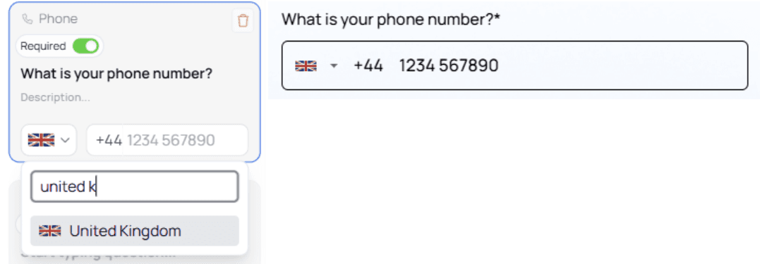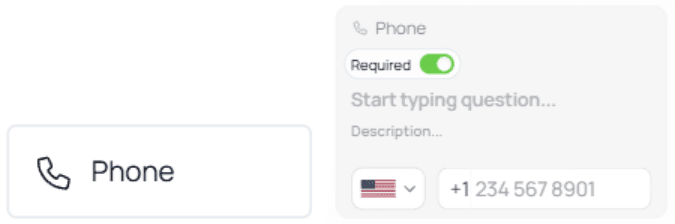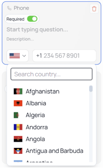Used to collect phone numbers, with country code selection.