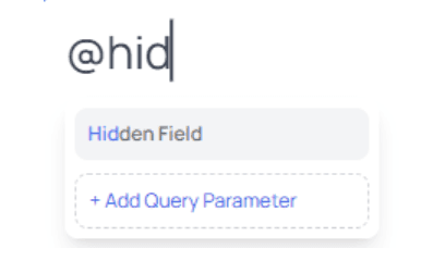 When you type@, the Hidden Field appears in the mention list and can be inserted wherever dynamic data is supported.