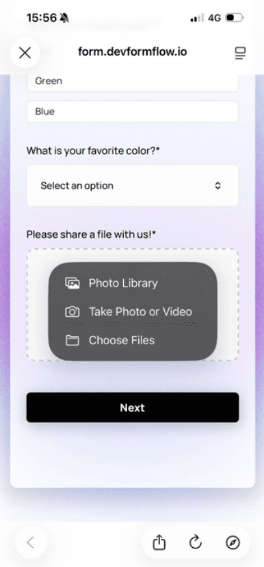 File Upload fields may increase form submission size — avoid using too many in one form.Date