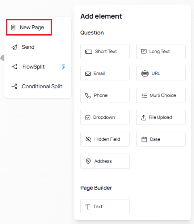 Below is a breakdown of each element type inside the New Page category.