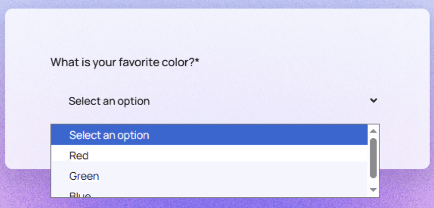 Functions like a Single Choice node but uses a dropdown menu instead of option buttons.