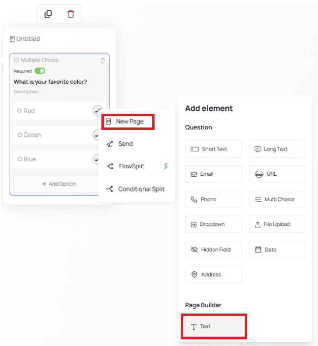 Choose New Page → Text