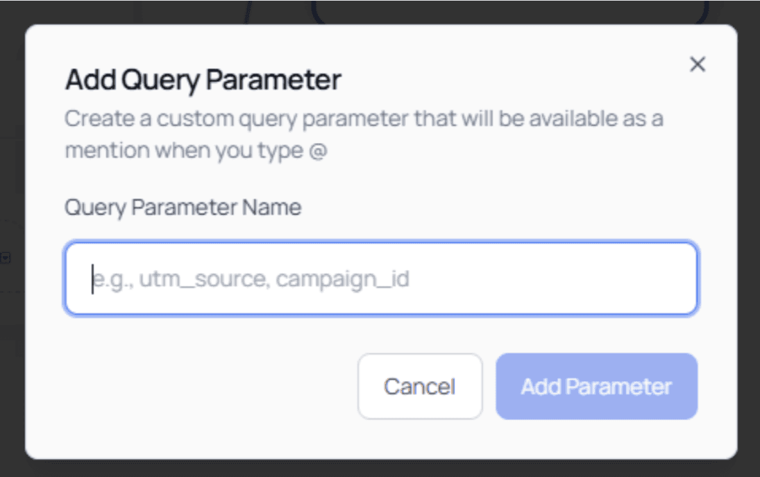 Click Add Query Parameter, then define your parameter name.