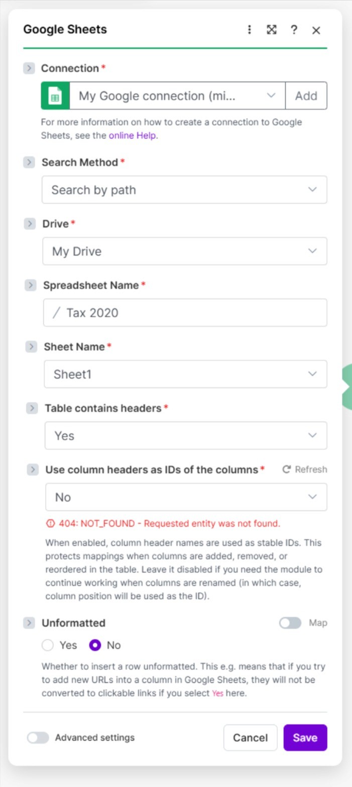 Congrats, you’ve completed your Make & Google Sheet integration!