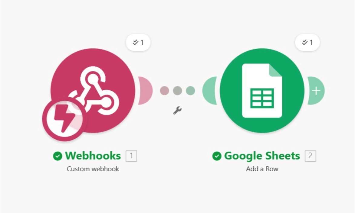 After submitting your form, you’ll see the checkmarks above your modules inside Make