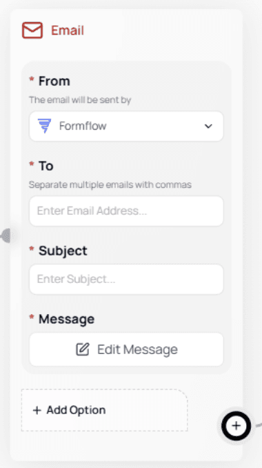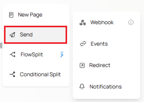 The Send menu gives you powerful options to connect Formflow to external platforms, automate communication, and end flows cleanly.