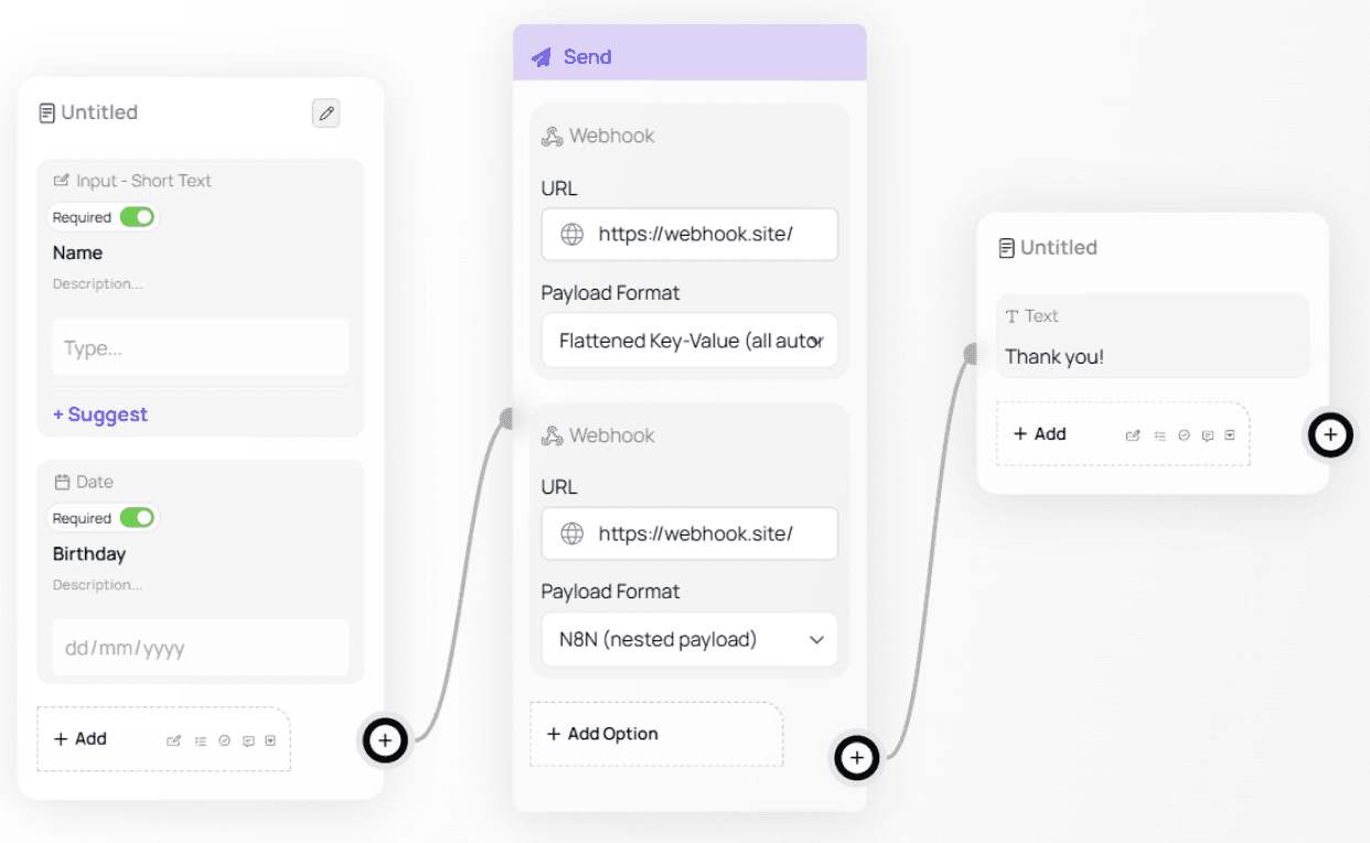 These nodes allow you to send customized notifications to your users based on their form responses.