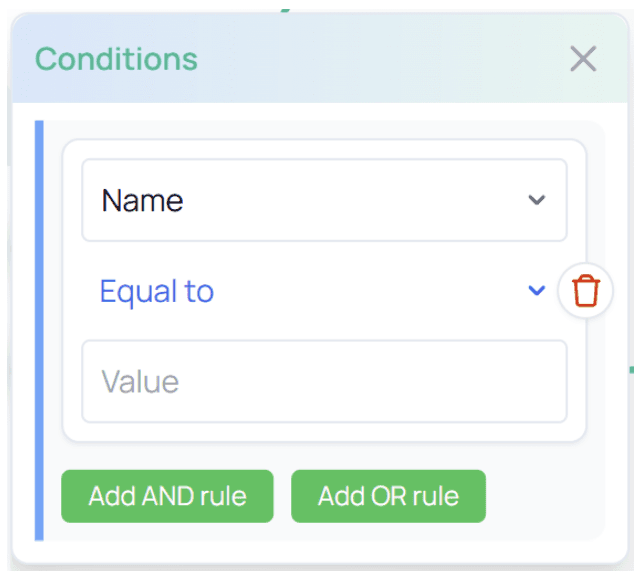 Inside the settings panel, click Add Rule. You will see the available configuration options:
