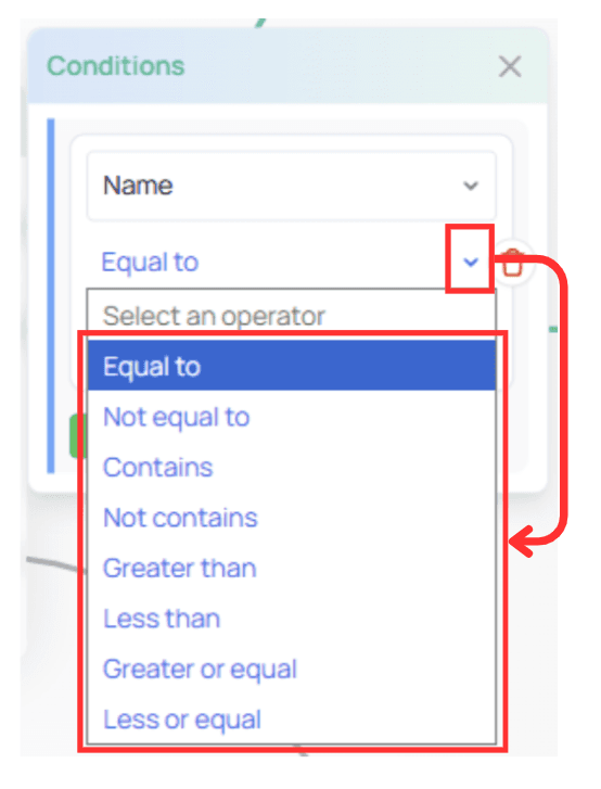 Click the blue arrow beside the operator to view all available options.