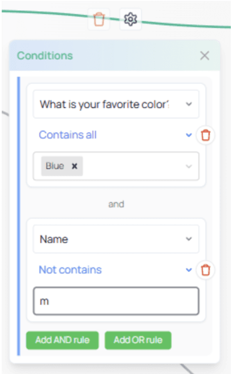 “If the favorite color is Blue AND the name does not contain the letter M…”