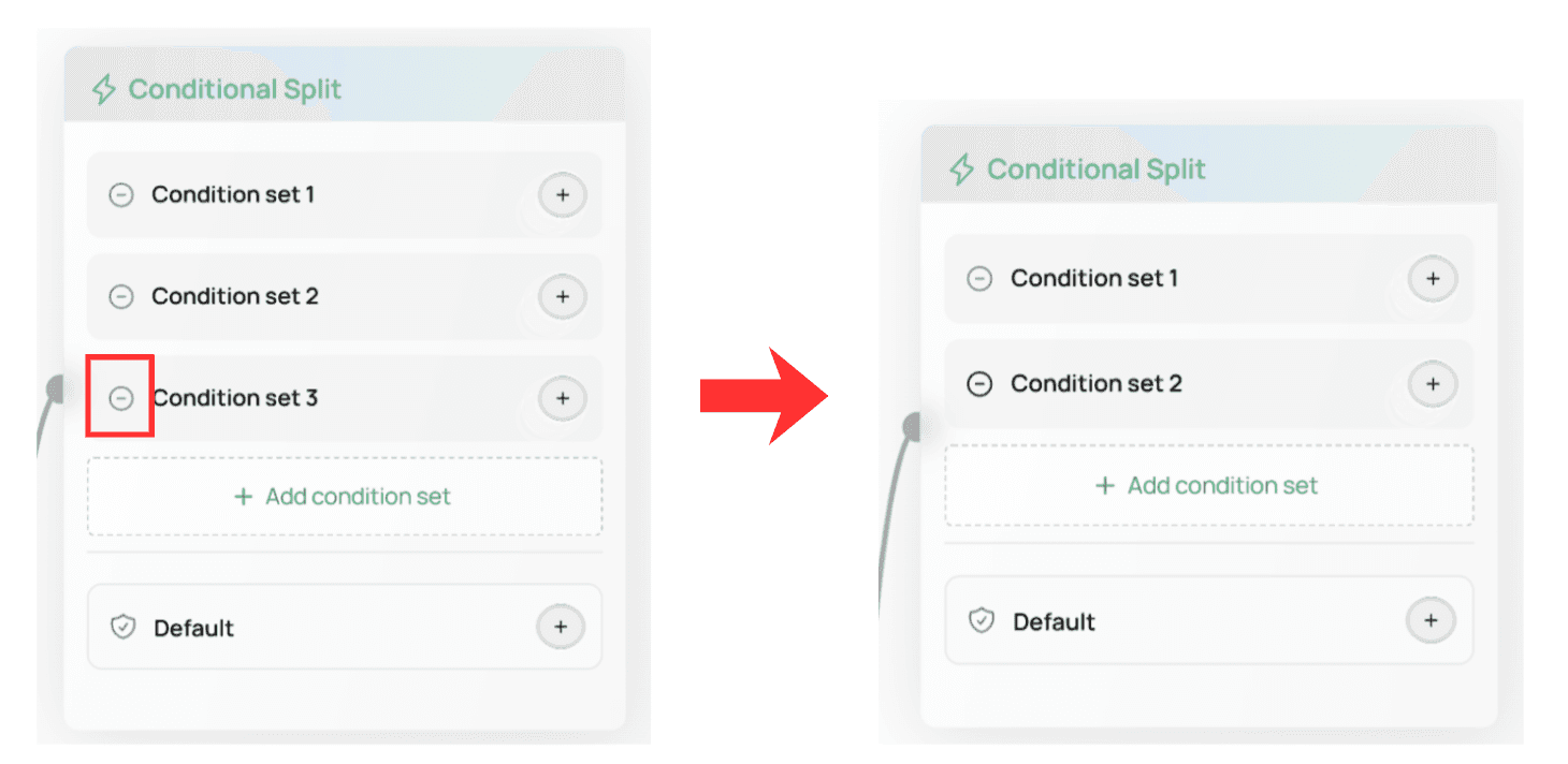 You can add more condition sets using + Add condition set, or remove one using the delete button.