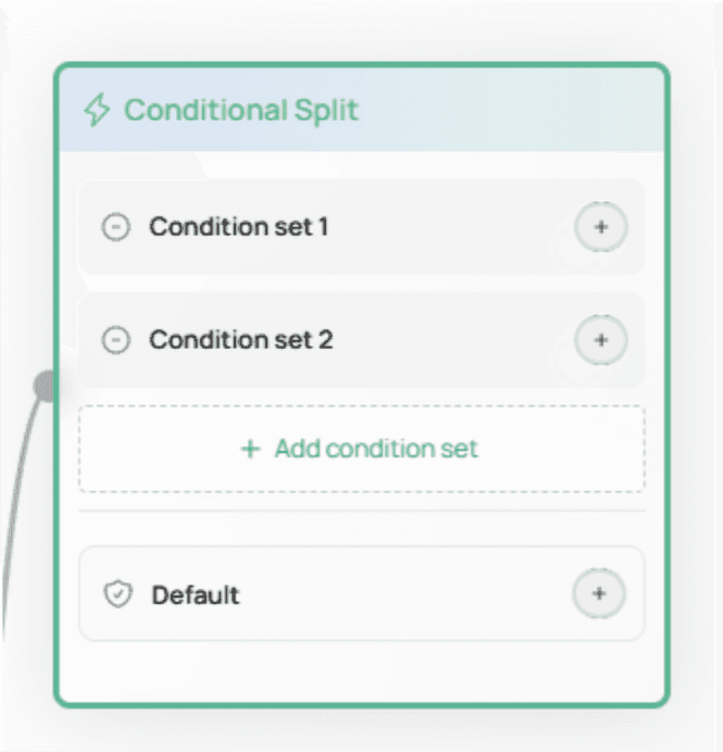 The Default set acts as a fallback path — if none of the condition sets match, the user will automatically follow the Default path.