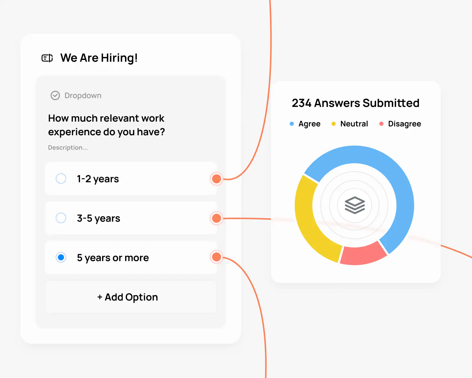 Manage multiple job openings effortlessly. Design dynamic forms that adapt to different positions, departments, and requirements. Use FlowSplit to route candidates to specific questionnaires based on their role preferences.